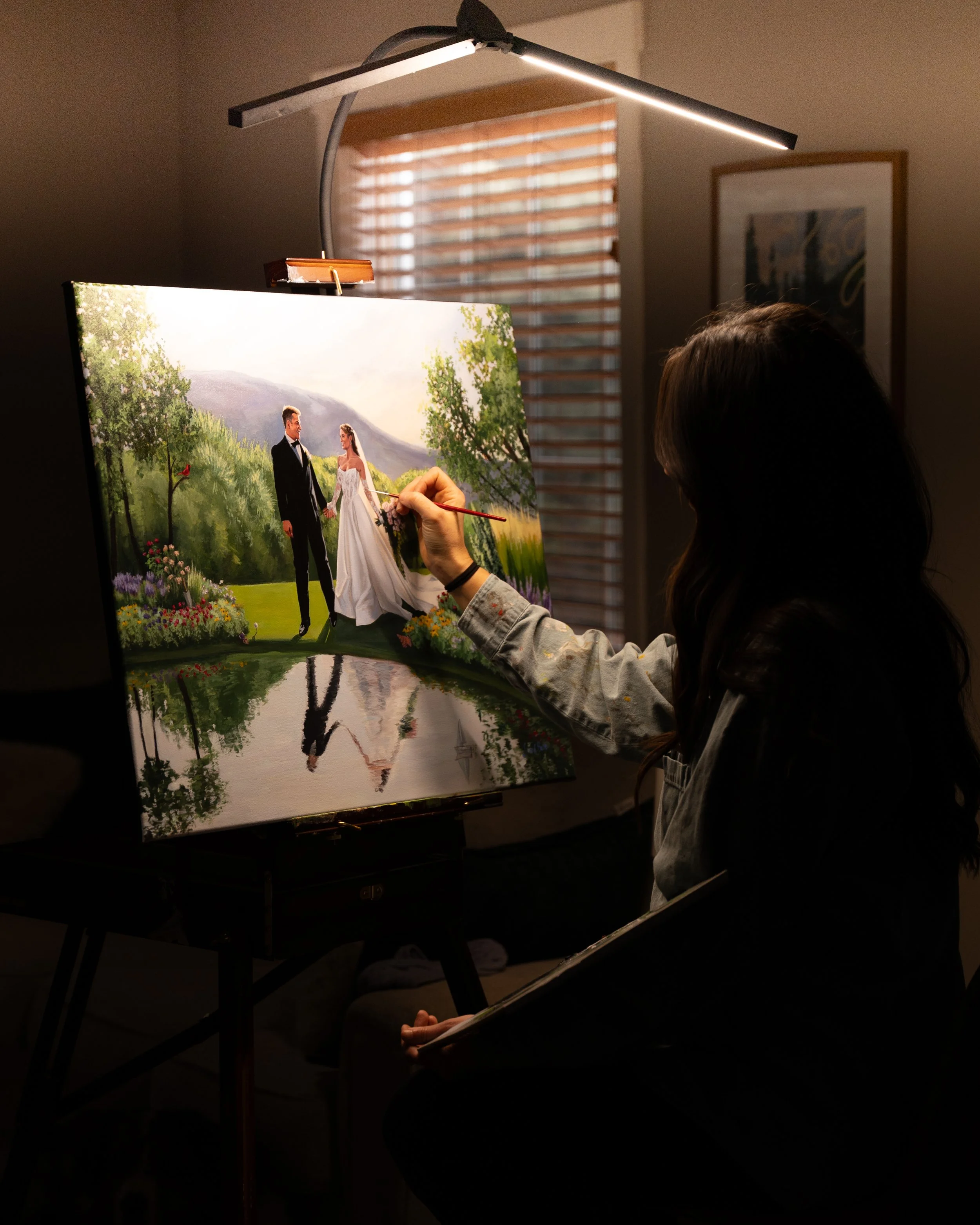 After your wedding, I bring the painting back to my studio to refine details and bring everything fully together. The final piece is something you’ll keep long after the day has passed—a way to return to that moment again and again.