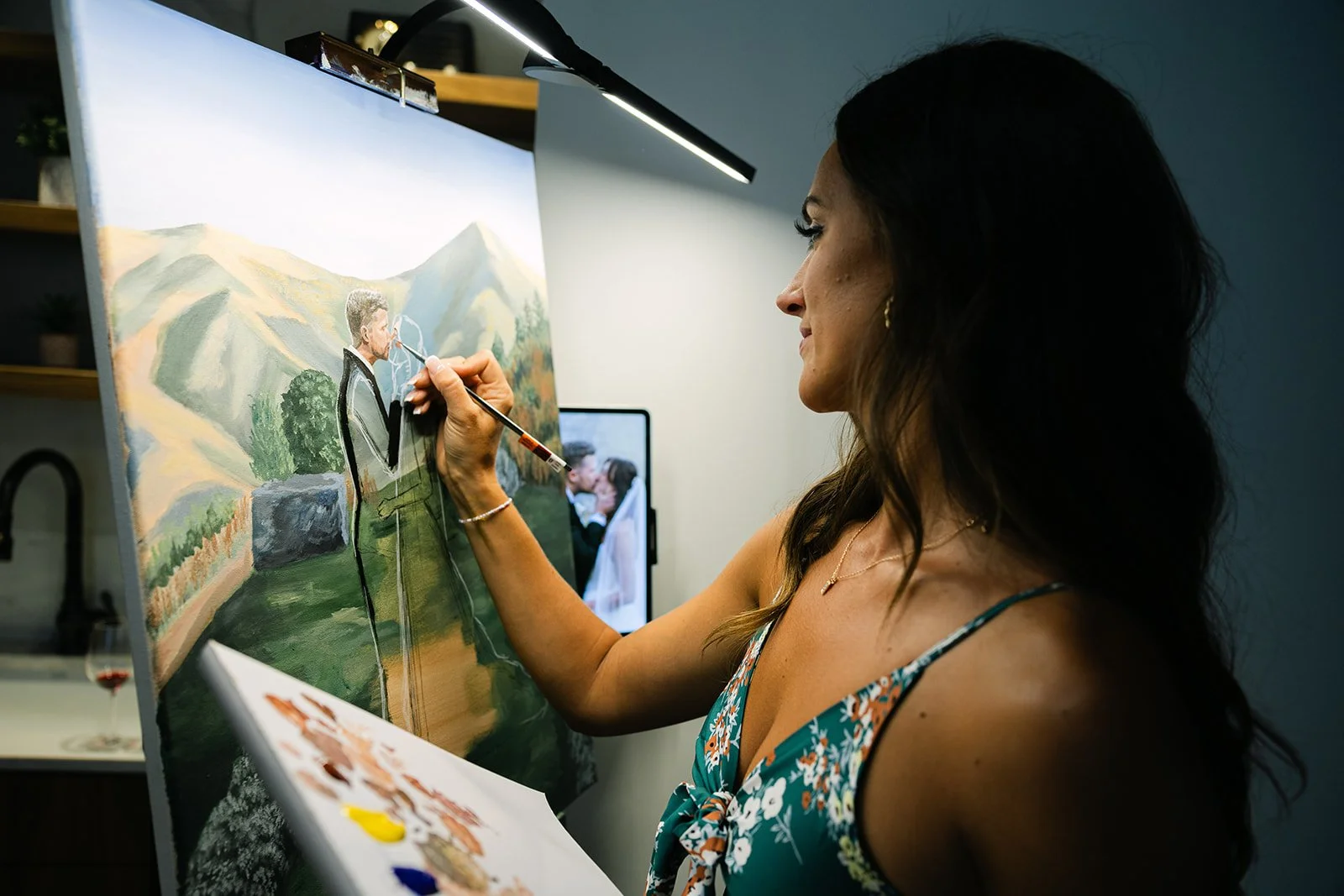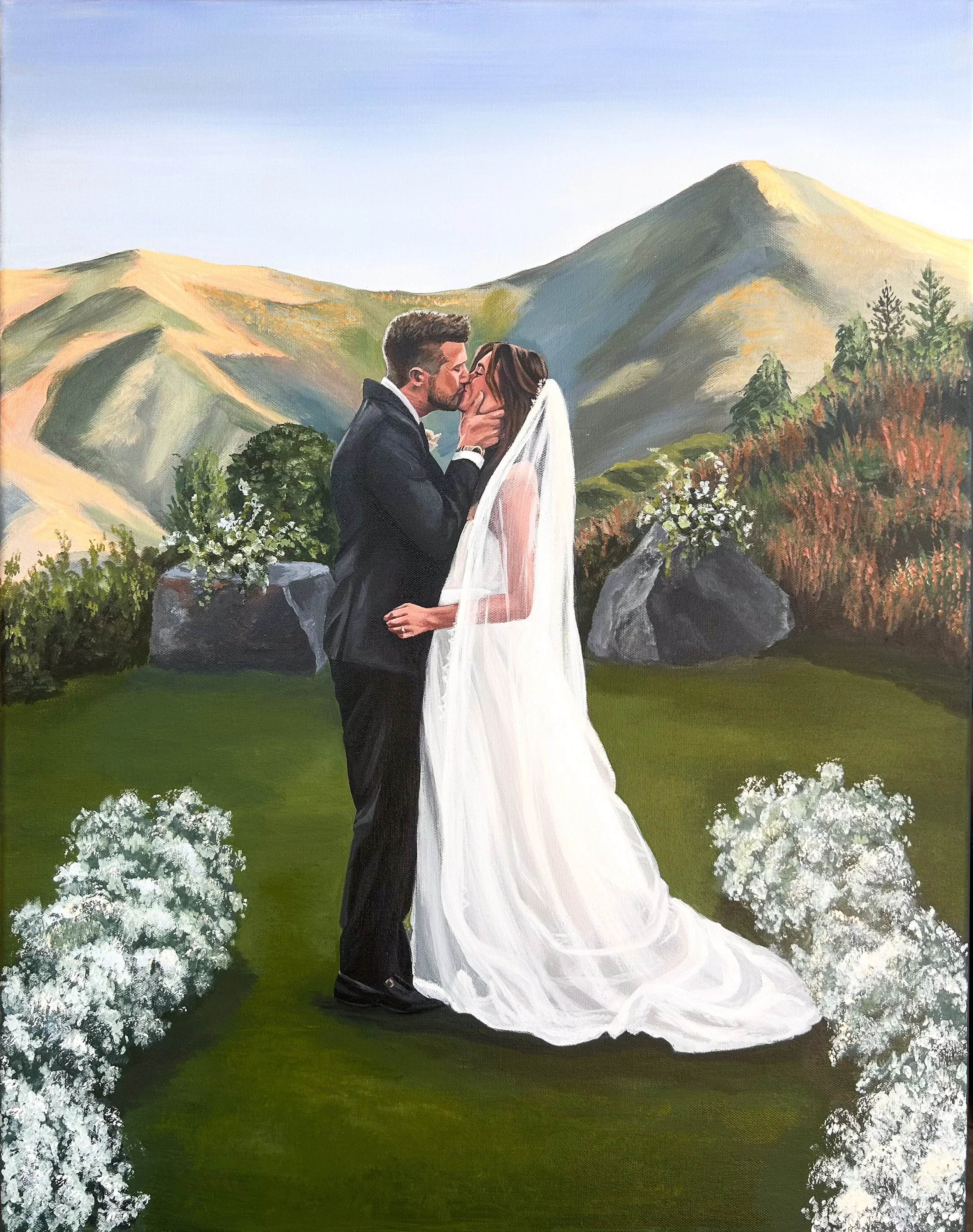 Before your wedding day, we’ll connect to talk through your vision—what moments matter most to you, the overall feel of your day, and what you want your painting to capture. This helps me walk into your wedding already understanding what’s important to you.